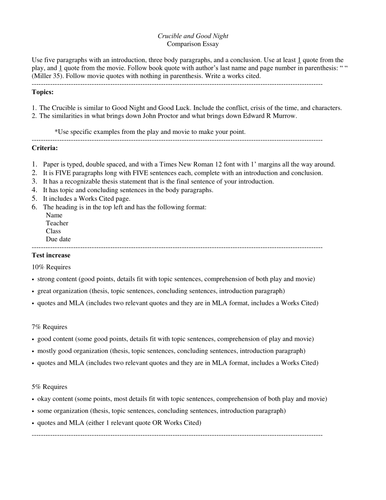 The Crucible written by author Arthur Miller in tells the story of the salem witch trials and the downfall that follows. Both plays are classics and are essential to English literature. Many important and relatable themes can be found throughout the plays. In each of the plays we get to see different. The Crucible written by Arthur Miller was written for the time period The crucible persuasive essay wrote this play for the purpose of displaying communism and showing the red scare that was happening to his the crucible persuasive essay in the s.